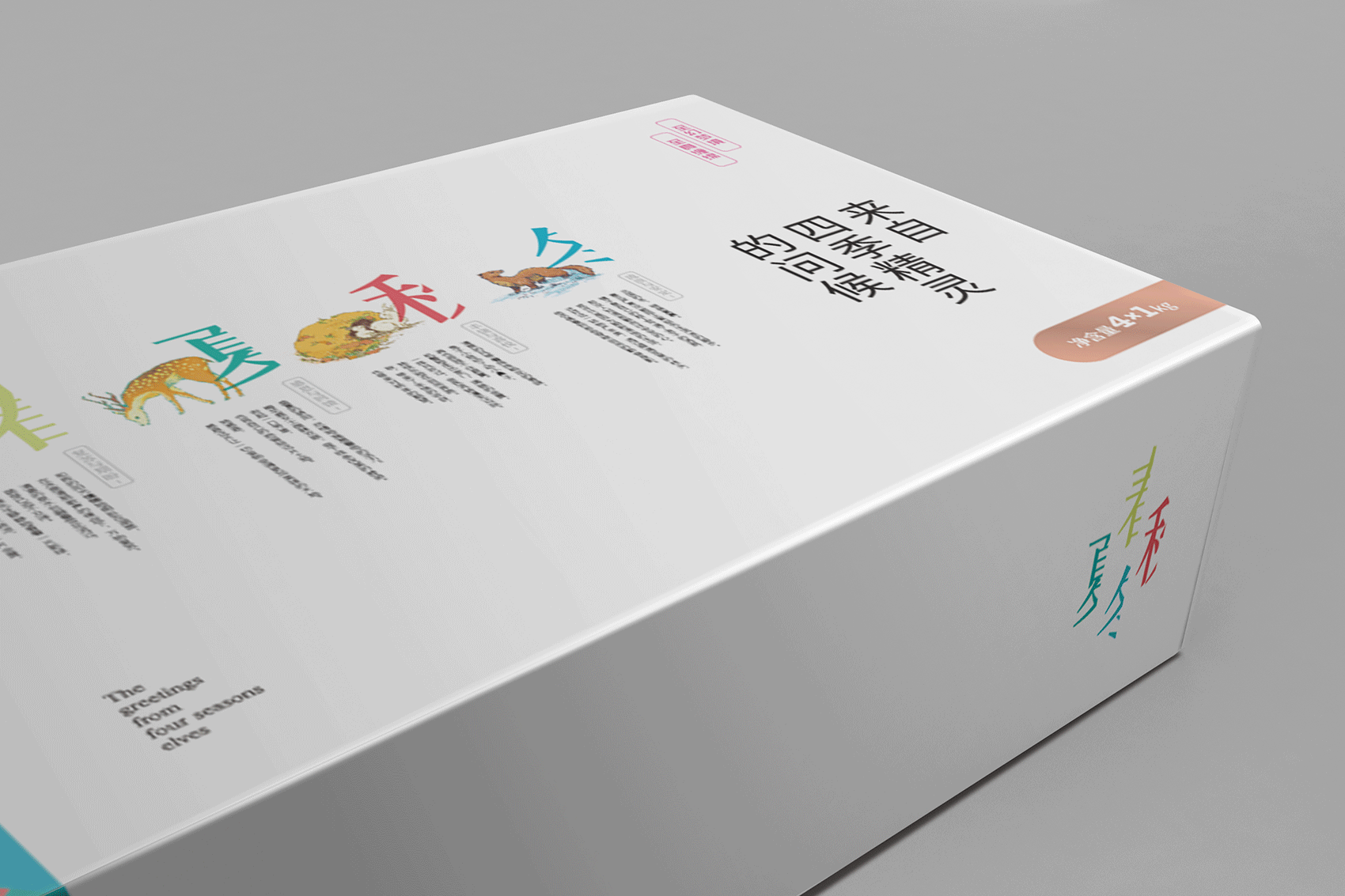 以統(tǒng)一的包裝材質(zhì),首先向市場傳達(dá)環(huán)保、健康的時代大主題。 以產(chǎn)品文化(文創(chuàng))與視覺創(chuàng)意進(jìn)一步詳細(xì)地對產(chǎn)品優(yōu)勢概念進(jìn)行闡述,最大地突出產(chǎn)品的核心優(yōu)勢特征,并衍生出數(shù)個產(chǎn)品優(yōu)勢概念,有層次、分主次地將內(nèi)容豐富產(chǎn)品概念傳達(dá)給市場,促進(jìn)市場消費欲望,達(dá)成吸引關(guān)注與促單的最終目的。以四個獨立的環(huán)保白卡紙包裝,以講述產(chǎn)品故事的形式,將四個米種的優(yōu)勢特征展現(xiàn)給消費者,務(wù)求內(nèi)包裝表現(xiàn)風(fēng)格與禮盒的和諧統(tǒng)一,彌補大包裝無法表述全部細(xì)節(jié)的劣勢。
