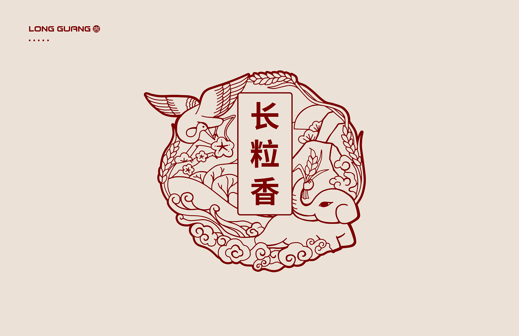 結(jié)合隆光大米處于品牌初創(chuàng)期的實(shí)際情況,突破同質(zhì)化的同時(shí)要拓展市場,在不做過多的廣宣的情況下,一個(gè)美觀大方、易于傳播的超級符號是解決這一問題的關(guān)鍵。經(jīng)過頭腦風(fēng)暴后,繽策通過品牌名稱——隆光兩字溯源,了解到隆字有興隆、厚重之意,而光字代表光明,昌盛,兩字合二為一意為吉祥安康,產(chǎn)品為有機(jī)稻花香,高品質(zhì)的好米自然會為消費(fèi)者帶來美好的生活,美好生活自然讓人放心,所以隆光=安康=放心成為了隆光的品牌內(nèi)在價(jià)值邏輯。