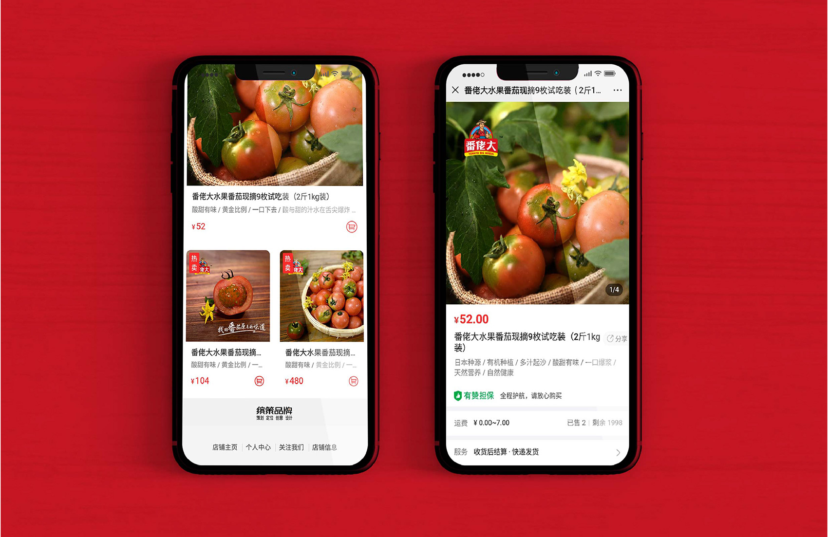 越來(lái)越多的案例告訴我們,那些擁有生命力的成功品牌大多數(shù)都擁有一個(gè)成熟穩(wěn)定的IP形象,能將消費(fèi)者的購(gòu)買(mǎi)行為與品牌及IP所營(yíng)造的故事連接在一起,讓品牌更具有人格化魅力,同時(shí)能夠快速拉近與消費(fèi)者的距離,繽策原創(chuàng)設(shè)計(jì)出一個(gè)憨厚質(zhì)樸的番茄農(nóng)人形象來(lái)構(gòu)建品牌IP,頭頂遮陽(yáng)的草帽,身著背帶褲與紅T恤,面帶自豪的微笑,一手捧著紅艷艷的番茄,一手豎起大拇指,似乎在告訴消費(fèi)者經(jīng)過(guò)綠色種植、統(tǒng)一管理的品質(zhì)番茄歡迎每一個(gè)人品嘗,將番佬大這三個(gè)字生動(dòng)形象的表現(xiàn)出來(lái),在終端應(yīng)用中醒目惹眼,具有極強(qiáng)的親和力,并讓消費(fèi)者能夠快速記憶。