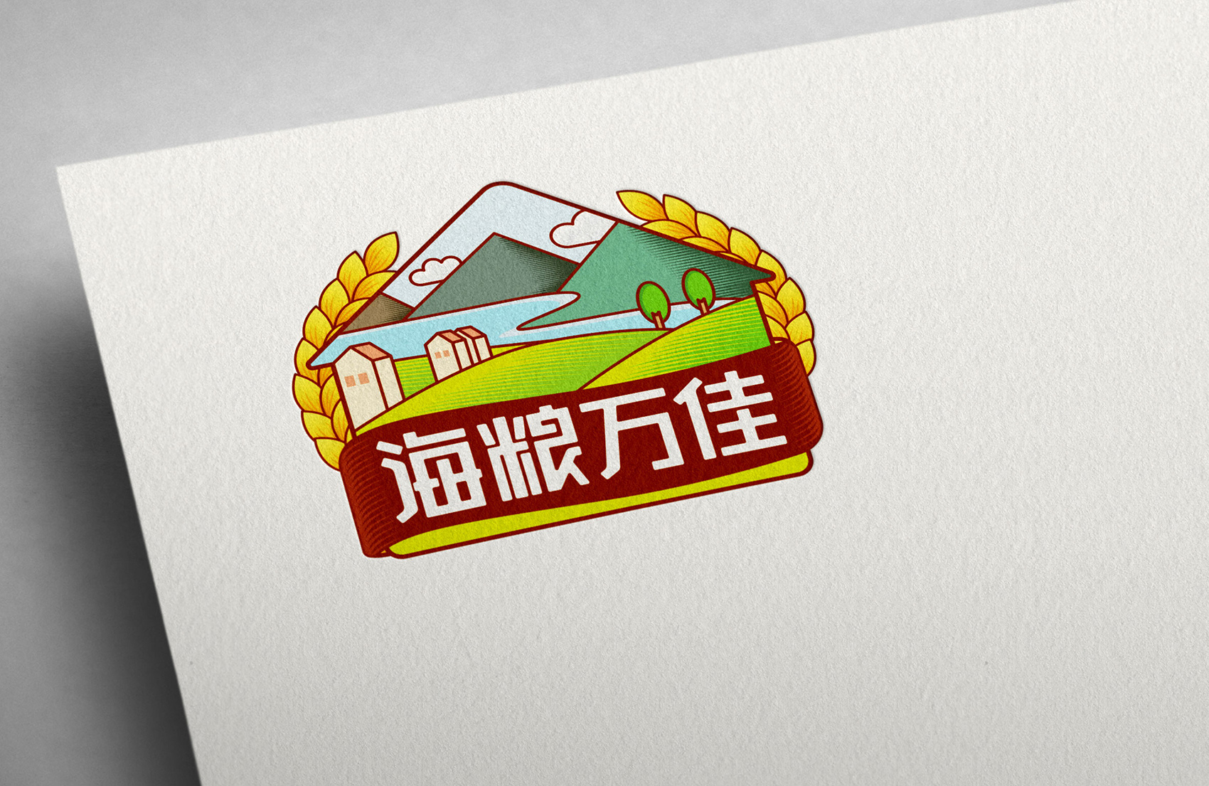 本款logo以糧倉的圖形與原創(chuàng)設(shè)計字體相結(jié)合,共同組成代表品牌名稱的超級符號。圖形部分選擇使用糧倉與家園相結(jié)合的意象,周邊使用水稻(品牌主營產(chǎn)品)、絲帶作為裝飾,代表品牌作為糧食貿(mào)易平臺的行業(yè)屬性,也寓意企業(yè)為千萬家庭守護(hù)食品安全,為家庭提供優(yōu)質(zhì)的產(chǎn)品。糧倉內(nèi)展現(xiàn)的是綠油油的稻田,青山綠水間佇立著幾座糧倉,象征“恪守行業(yè)道德,捍衛(wèi)食品安全”的品牌理念,糧倉是從土地到餐桌的必經(jīng)之路,是將生產(chǎn)與市場連接的紐帶,所以將糧倉作為品牌凝練的超級符號,展現(xiàn)出中國糧食產(chǎn)業(yè)集成服務(wù)平臺的定位,辨識度高便于記憶傳播。