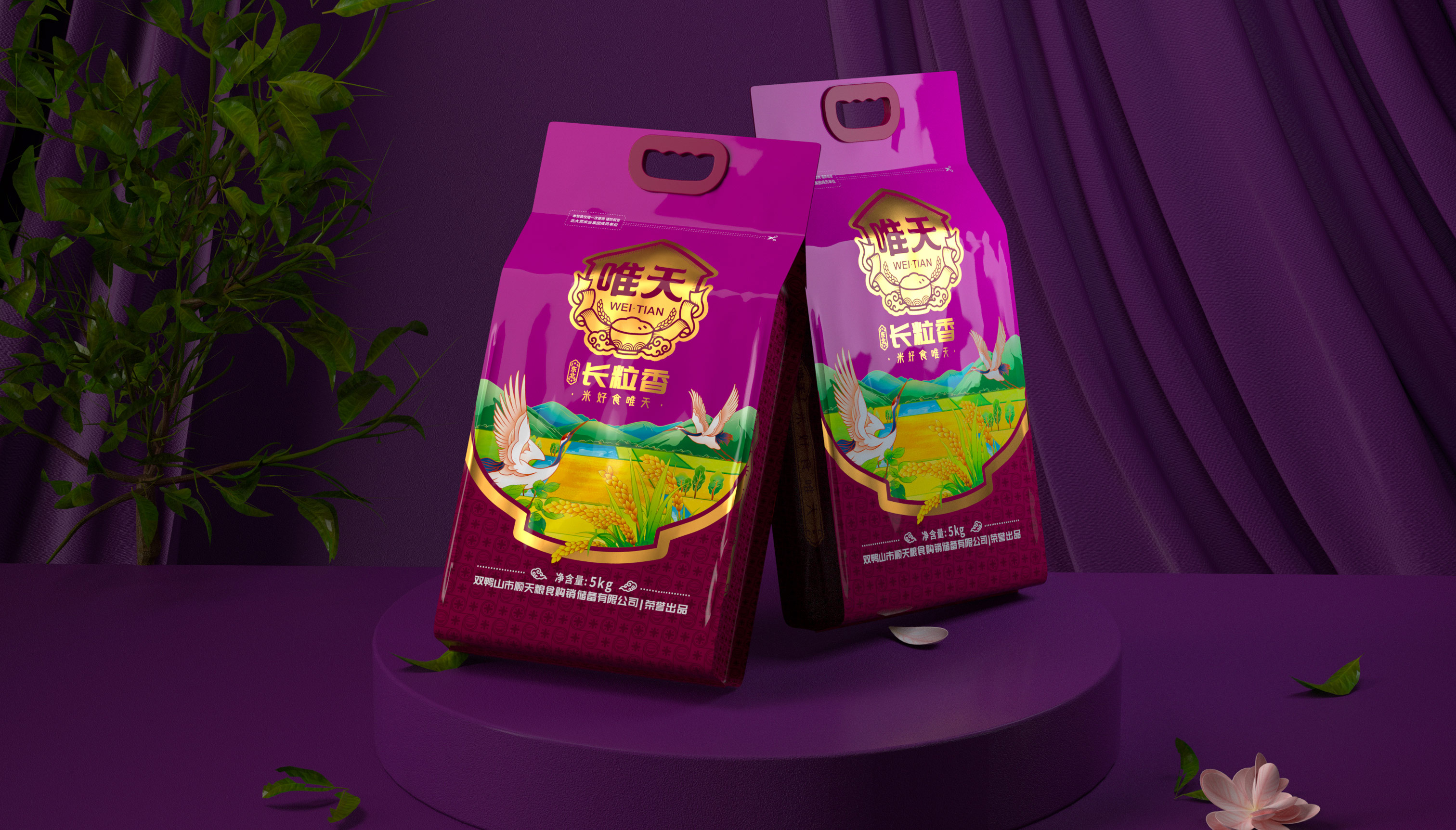 由于前身為國家糧食儲(chǔ)備基地,品牌基礎(chǔ)薄弱,僅有品牌名稱,體系缺失,品牌內(nèi)核不清晰,即使在南方市場(chǎng)中與同類競(jìng)品相比在品牌傳播力與視覺層面都處于弱勢(shì);企業(yè)希望從名稱入手,以品牌的高度,將唯天提煉出一整套帶有營銷屬性的品牌符號(hào)、品牌口號(hào)與套系包裝,兼顧傳播力與美感的同時(shí),通過品牌超級(jí)符號(hào)體系積累心智資產(chǎn),進(jìn)一步開拓發(fā)展目標(biāo)市場(chǎng)。